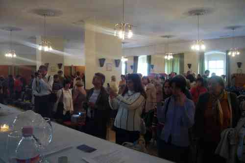 A scene from the opening of the Festival as the speakers