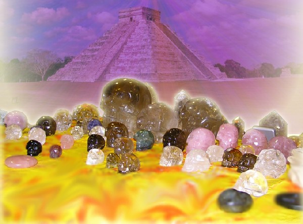 skulls from the Crystal Skull World Mission Conference and inserted a Mayan pyramid behind them. Apolinario, the High Mayan Priest